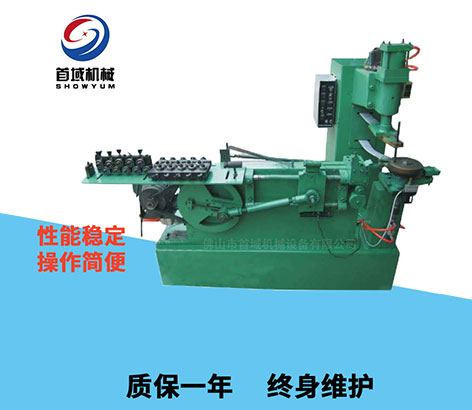 1、动作原理:进线--校直--点焊--切断--转动--进线(重复前面步骤),速度快,效率高,班产量达到800-1000只。